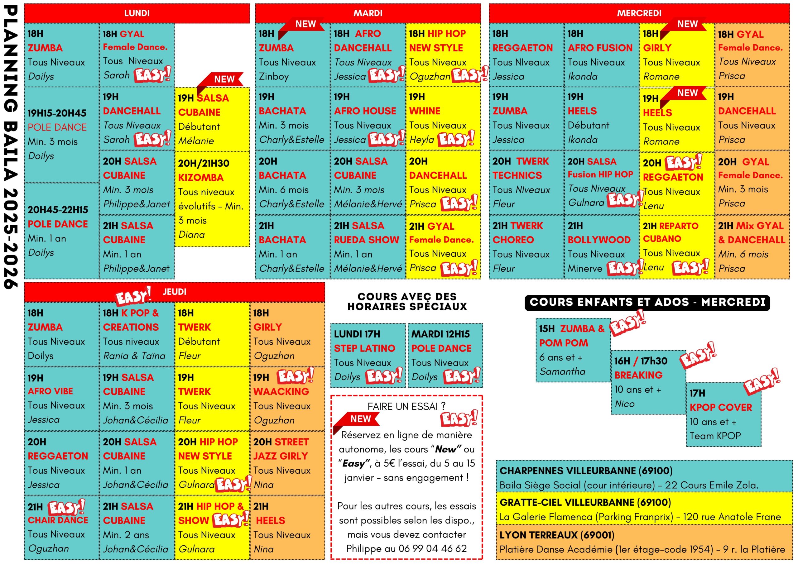 L'écoleSituée à Villeurbanne (Charpennes et Gratte Ciel), et à Lyon Terreaux, au pied du métro ligne A… Cela n’a jamais été aussi simple de venir danser au quotidien !